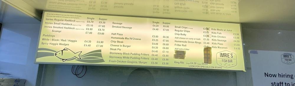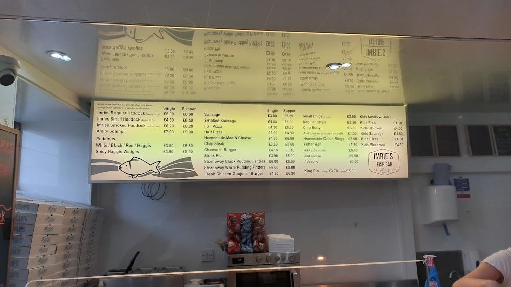 Located at 2 South St, Leven KY8 4NU, Imries Fish Bar & Seafood Shop enjoys a central location for both locals and visitors. It’s the perfect pit stop after a day at the beach or exploring the surrounding area. This seafood haven brims with charm and serves as a beacon for those craving authentic fish and chips. The shop’s reputation spreads beyond Leven, attracting all walks of life who share a common love for fresh seafood. The owners and staff, known for their warmth and efficiency, enhance every experience, helping patrons select the freshest catch of the day. I love how they proudly display the origins of their daily catch, offering a glimpse into local fishing practices. The casual vibe easily accommodates families, and the wheelchair-accessible seating makes it welcoming for everyone. With both dine-in and takeaway options, I appreciate the convenience offered here, whether you're grabbing a quick bite or enjoying a leisurely meal. The presence of free parking in nearby lots adds to its allure, ensuring a hassle-free experience. Imries typically sees a crowd, particularly on Saturdays during peak dinner hours, so it’s best to plan around popular times or even consider reservations for a guaranteed spot. Offering a kids' menu and various dining options, this spot guarantees satisfaction for all ages.